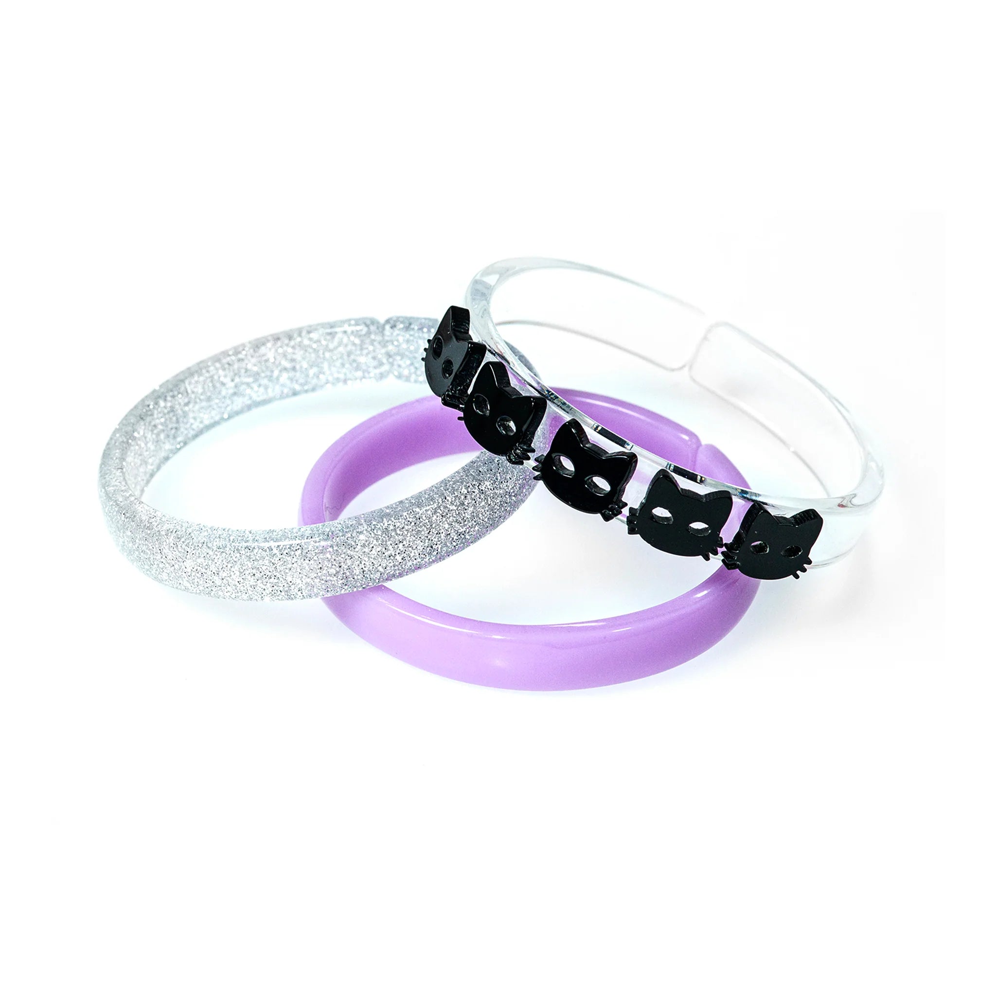 Lilies & Roses Black Cat Silver Glitter+ Light Purple Bangle Set