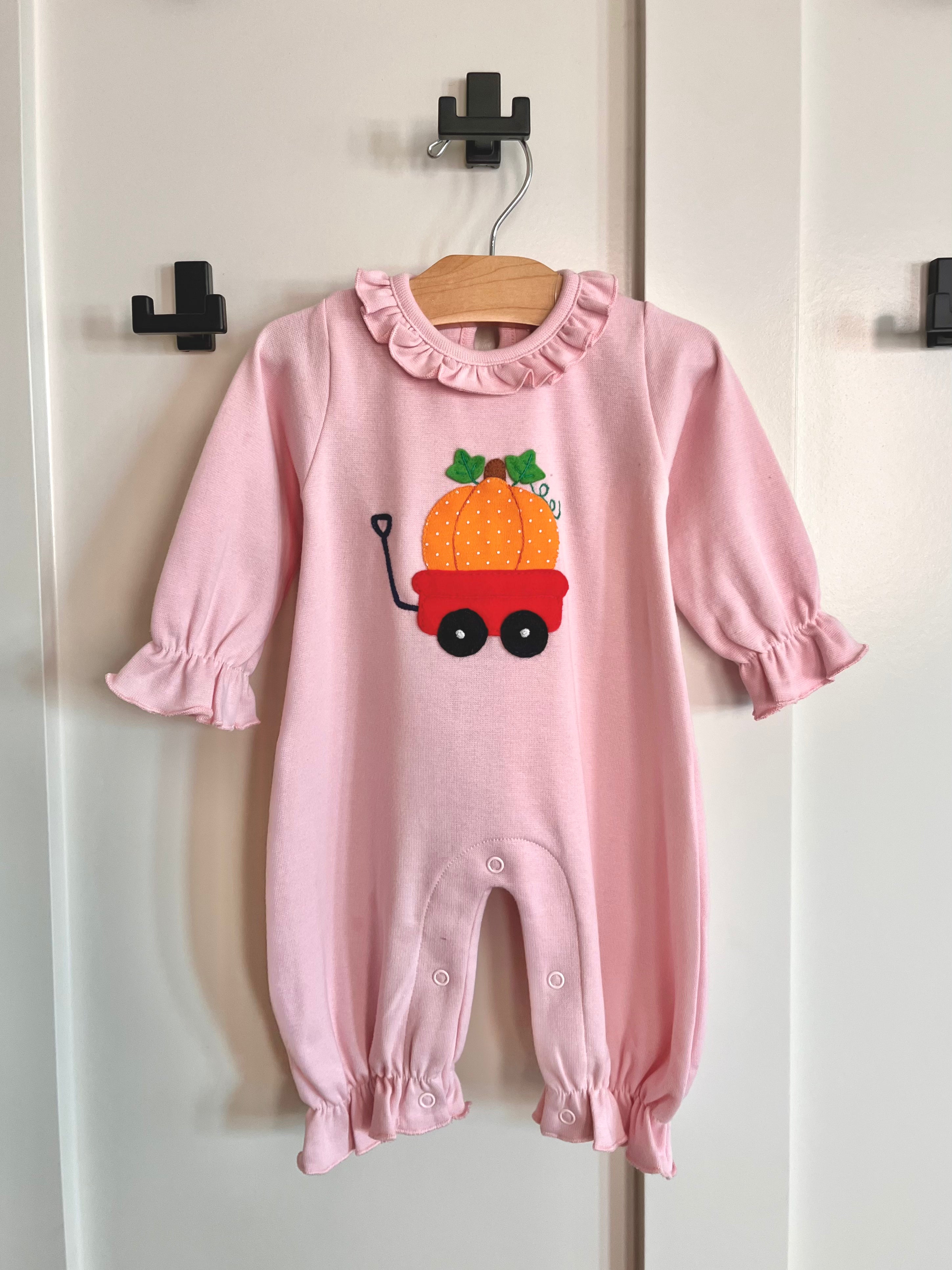 Luigi Kids Pumpkin in Wagon Ruffle Neck Romper