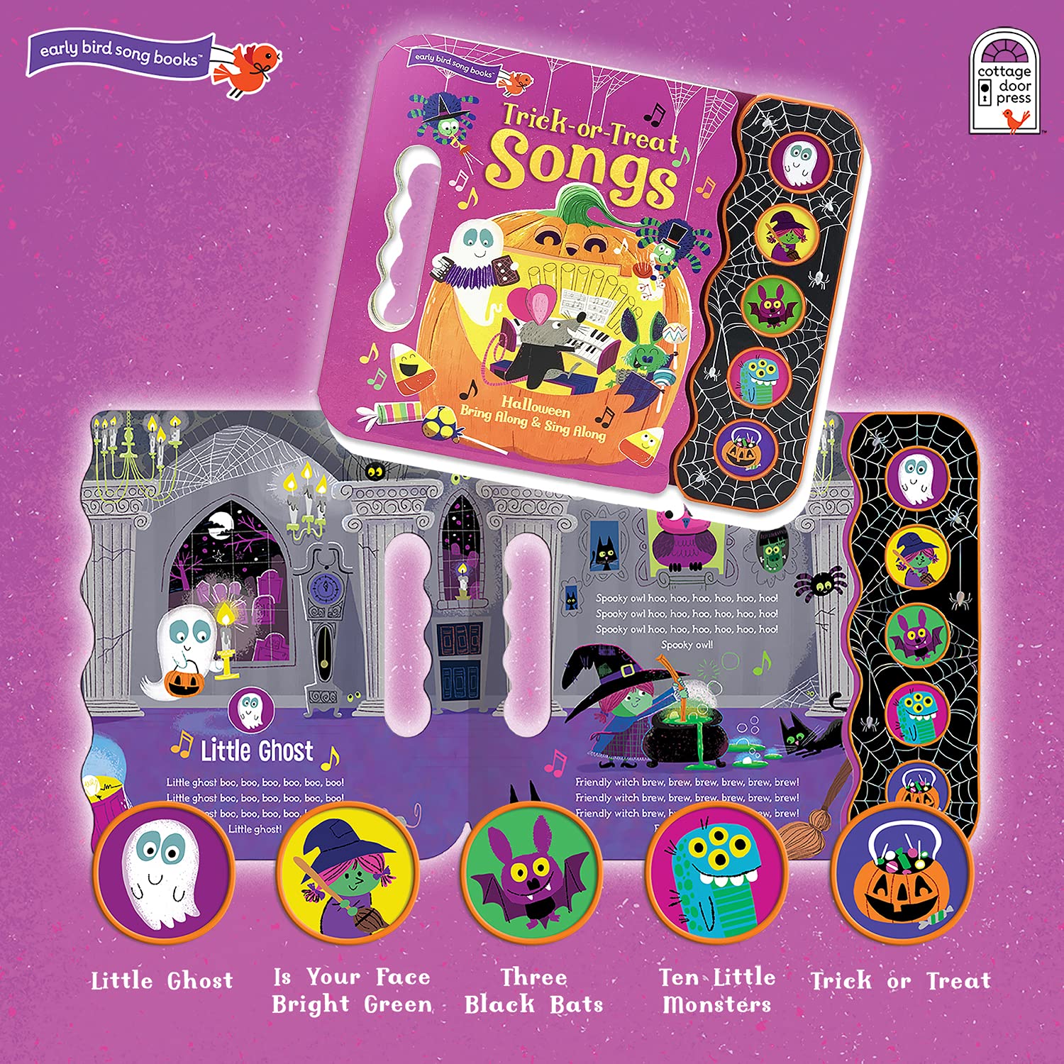 Celebrate the magic of Halloween with our spooktacular sing-along interactive song sound book featuring favorite nursery rhymes with a fun, Halloween twist! Little ones will love singing Little Ghost to the tune of Baby Shark for hours! Lyrics to all five fun and spooky songs are accompanied by lively, festive artwork and matching audio buttons that are surrounded by a textured spider web. Pushing the buttons will help strengthen fine motor skills and allows for an enhanced sensory experience your little boy or girl will enjoy. A must for your kiddos Halloween library collection.