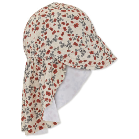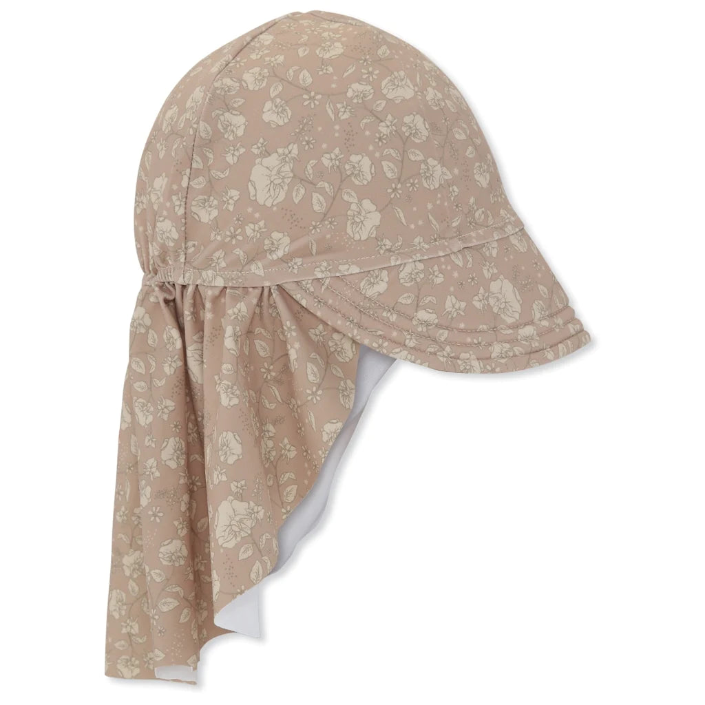 Sun hat made in 80 percent recycled polyester and 20 percent elastane. Designed with a broad elasticated padded brim and a long elasticated frill shade in the back for reliable sun protection and a comfortable fit. The stretchy fabric protects against the sun’s UV rays with the highest ultraviolet protection factor, UPF 50+.