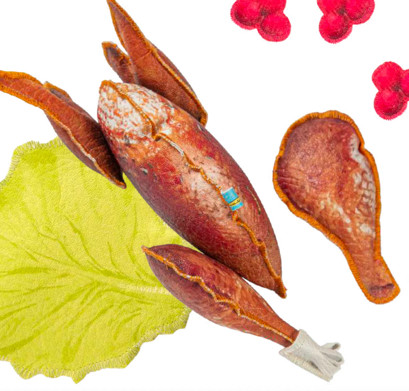 The play foods are made in vegan leather, using real imagery with non-polluting and hygienic inks.