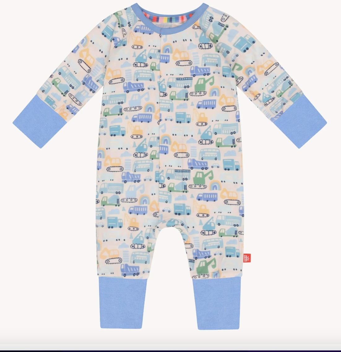 meet our grow with me convertible coverall, a one-piece that lets you adjust its features as your baby grows. magnetic closures ensure quick and quiet changes, and foldover cuffs for hands and feet extend the length and life of the coverall. made of eco-friendly TENCEL™ modal that's silky soft, breathable, and gentle on sensitive skin, this is one piece of clothing that baby won’t outgrow in the blink of an eye.