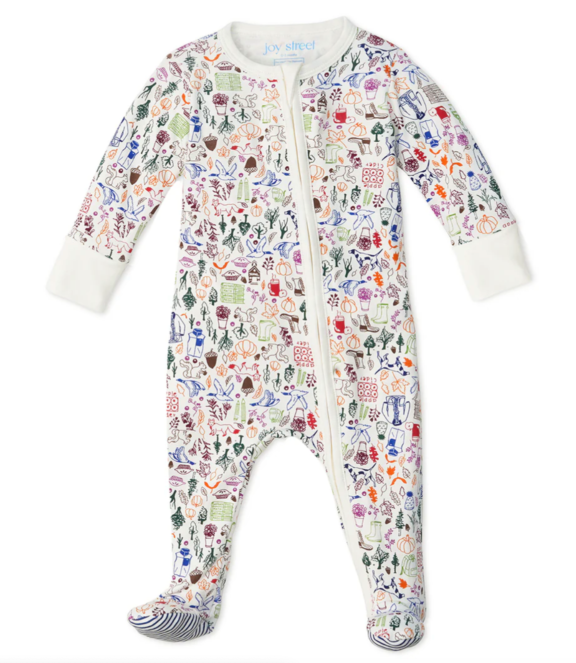 Fall in love with Joy Street's new Autumn Print! Perfect for back-to-school season, featuring Apple Cider Doughnuts, Back to School Backpacks, Geese heading south, and more! Cozy up your little pumpkin in this onesie that reminds us what makes the fall season so special!