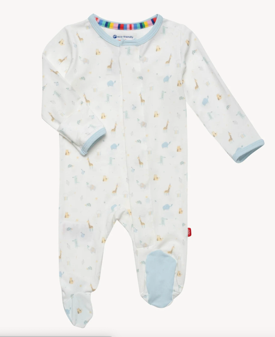 our parent favorite footie is an everyday (and night) essential with magnetic closures that make dressing easy. magnets are quick, quiet, and a lifesaver for middle-of-the-night changes. eco-friendly TENCEL™ modal is silky soft, breathable, and gentle on sensitive skin. temperature-regulating properties will keep warm in winter, you cool in summer, and oh-so comfortable year round.
