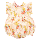 Celebrate the artistry of Inslee Fariss, brought to life through her signature watercolor style! Charming chicks alight next to beribboned posies against a pale yellow ground on our very feminine Baby Girls Jennifer Bubble, fresh for Easter in our Yellow Chicks print. This flock favorite shape delights with its poppy-tipped ruffled neck and ruffled sleeves and tiny poppy tipped ruffle at the leg. Zips at the back and boasts a ring snap closure at the bottom for easy diaper changes. Match back to Big Sis in our Girls Jennifer Dress.