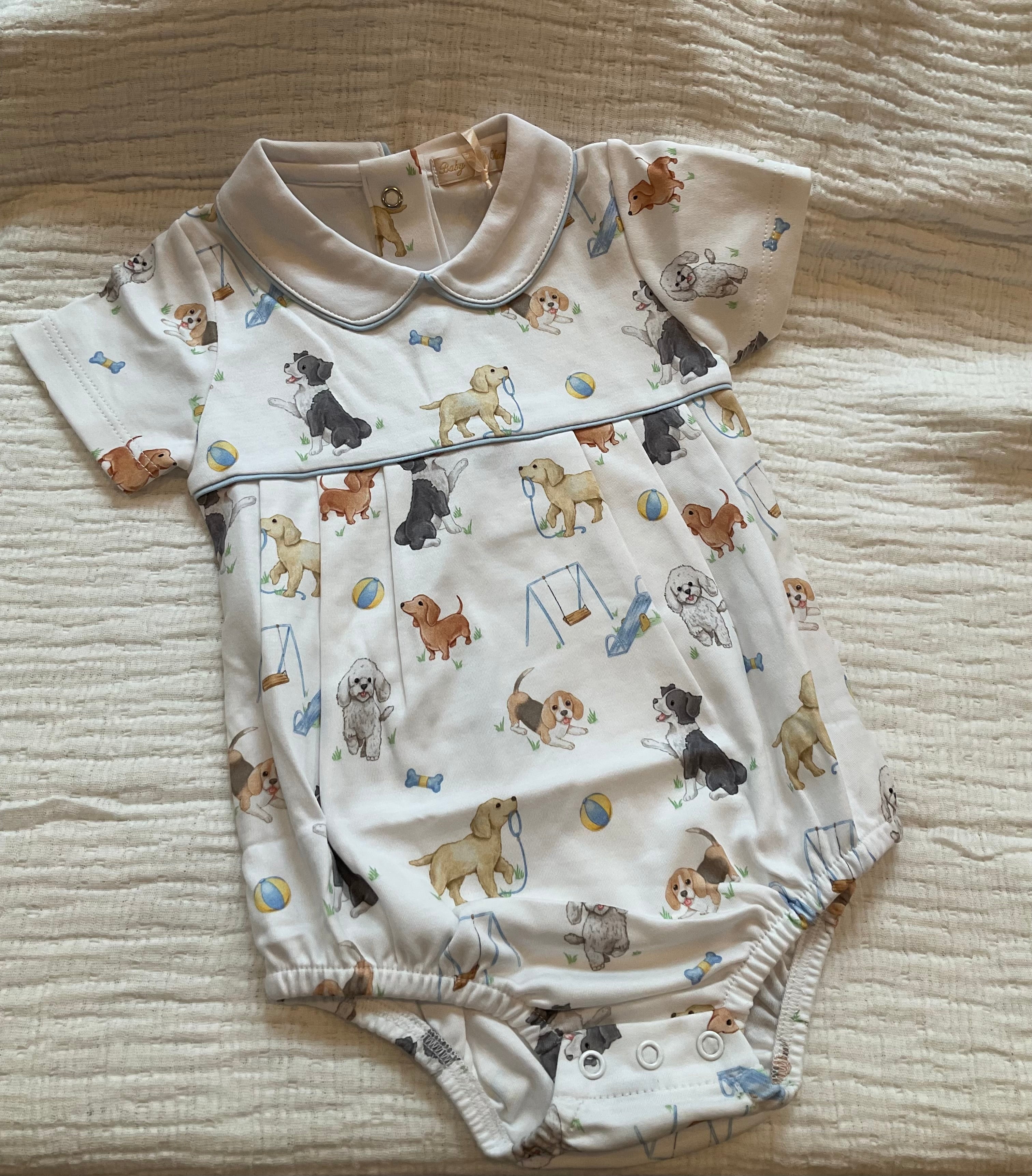 Let your little ones run wild in this playful Doggie Park Printed Bubble. With its quirky and fun design, this bubble is perfect for boys who love dogs. It's comfortable and stylish for any adventure. Woof woof!