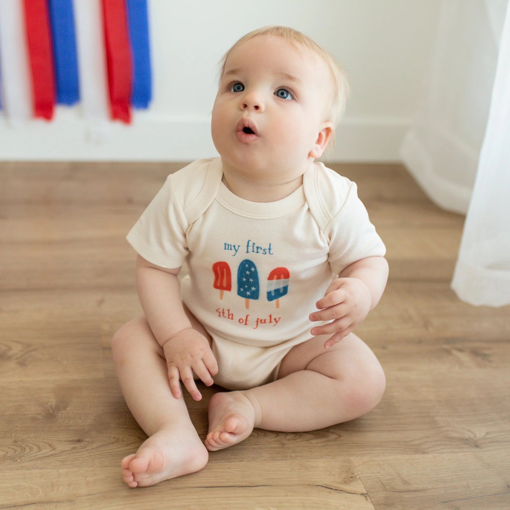 No better way to celebrate the 4th of July than with this sweet pop of color. Simple and comfortable is best, especially for babies. Our adorable bodysuit is perfect for all sizes and activity levels, from your little one's first day in the world to their first birthday celebration. Made from buttery-soft organic cotton, it features easy-snap fasteners for quick access when changing or bathing.