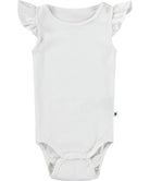 White bodysuit in organic ribbed cotton for the little ones. The bodysuit features small ruffle sleeves in poplin and snap closure between the legs, making it easy to put on and take off.