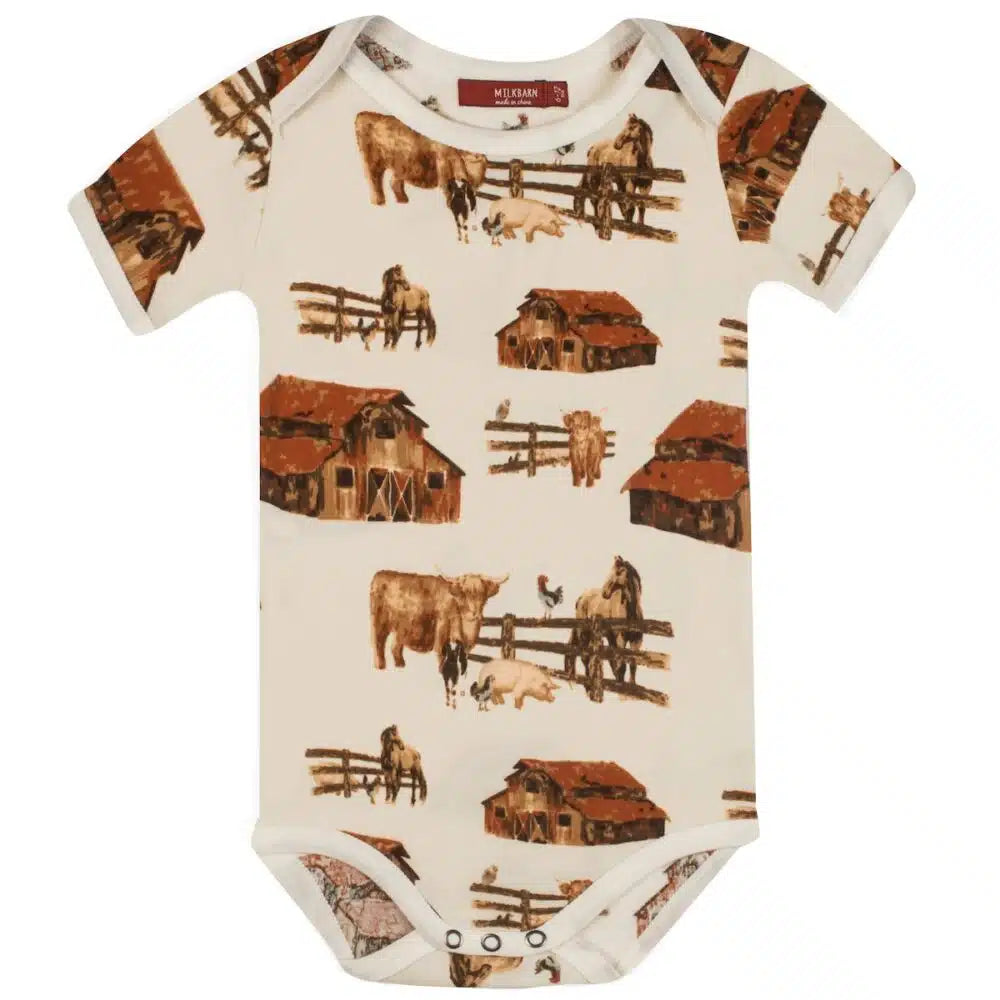 Our soft and soothing newborn and baby Organic Cotton One Piece in the Homestead print merges understated form and functionality.