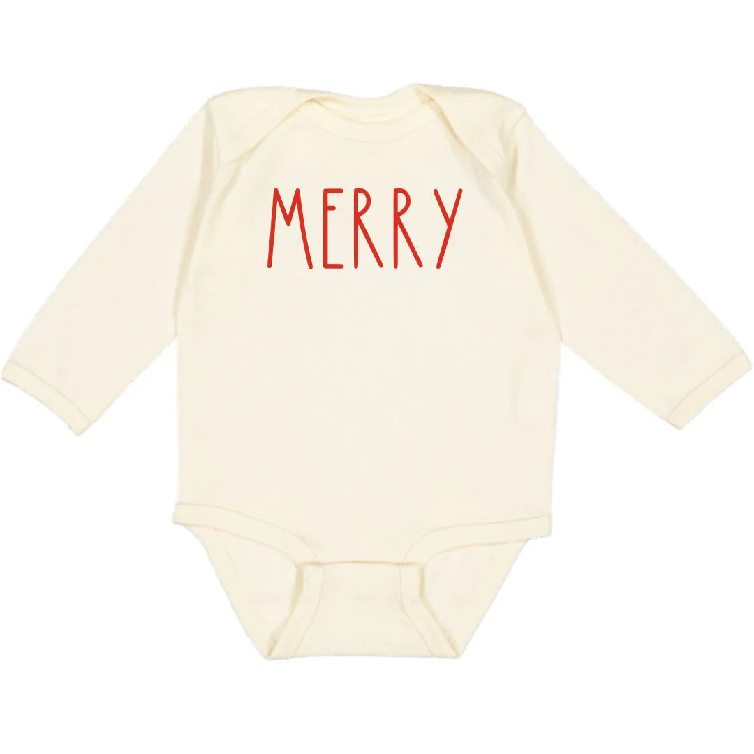 Merry Doodle Christmas Long Sleeve Bodysuit - Natural