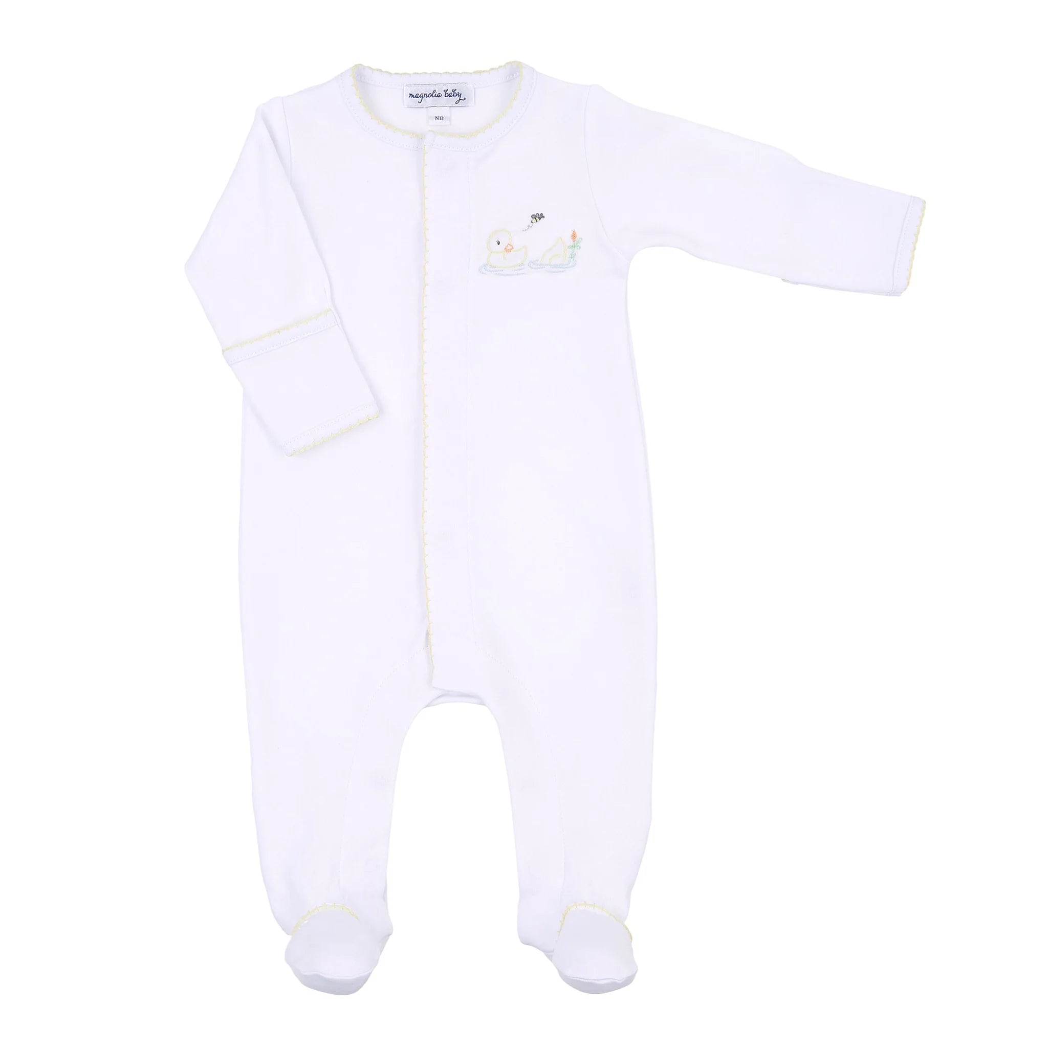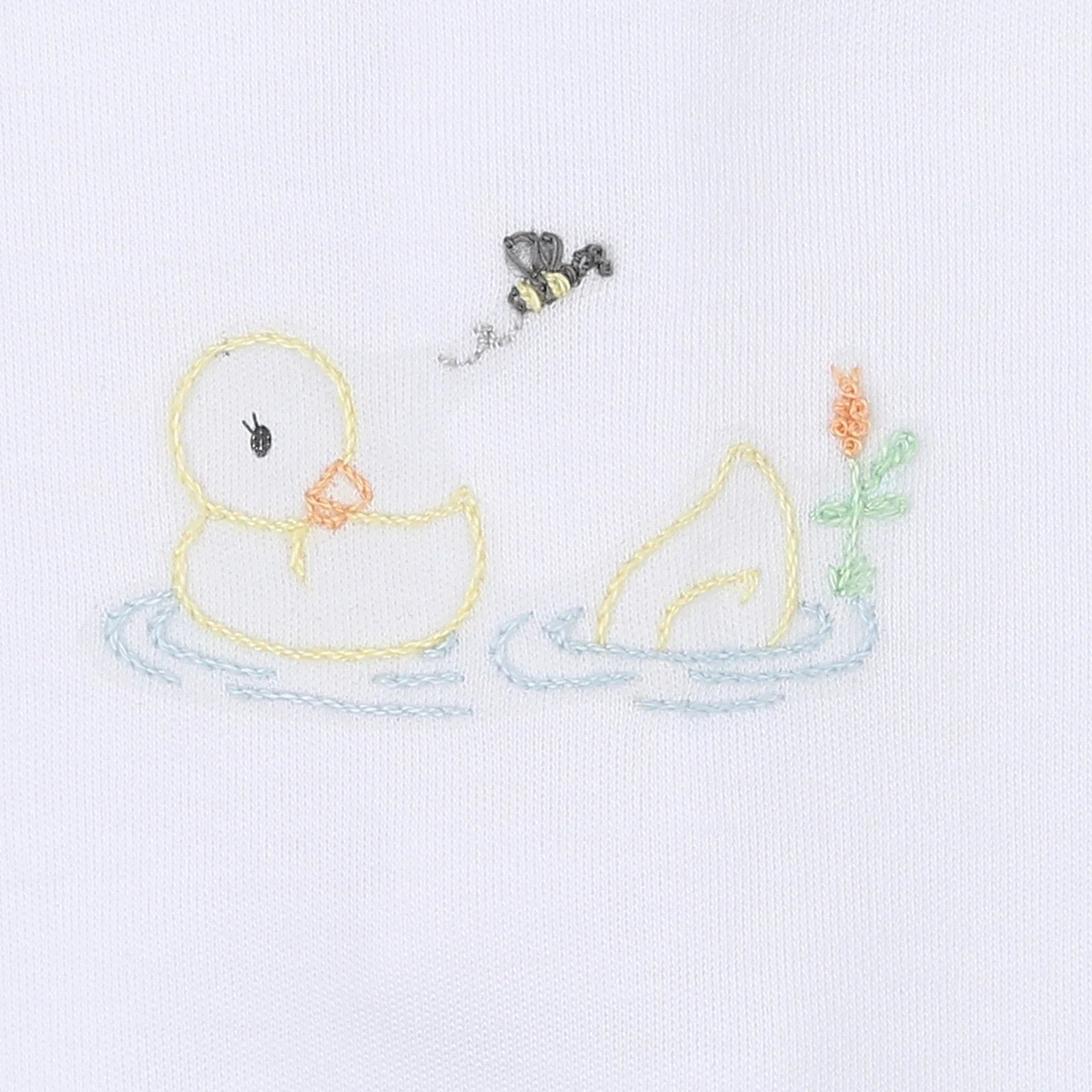 Embrace the charm of springtime with our adorable Vintage Duckies Collection, featuring hand-embroidered ducks frolicking amidst a backdrop of the softest Pima cotton. Ideal for welcoming your little one into the world, this collection is crafted with the utmost care and attention to detail, ensuring both comfort and style for your precious bundle of joy.