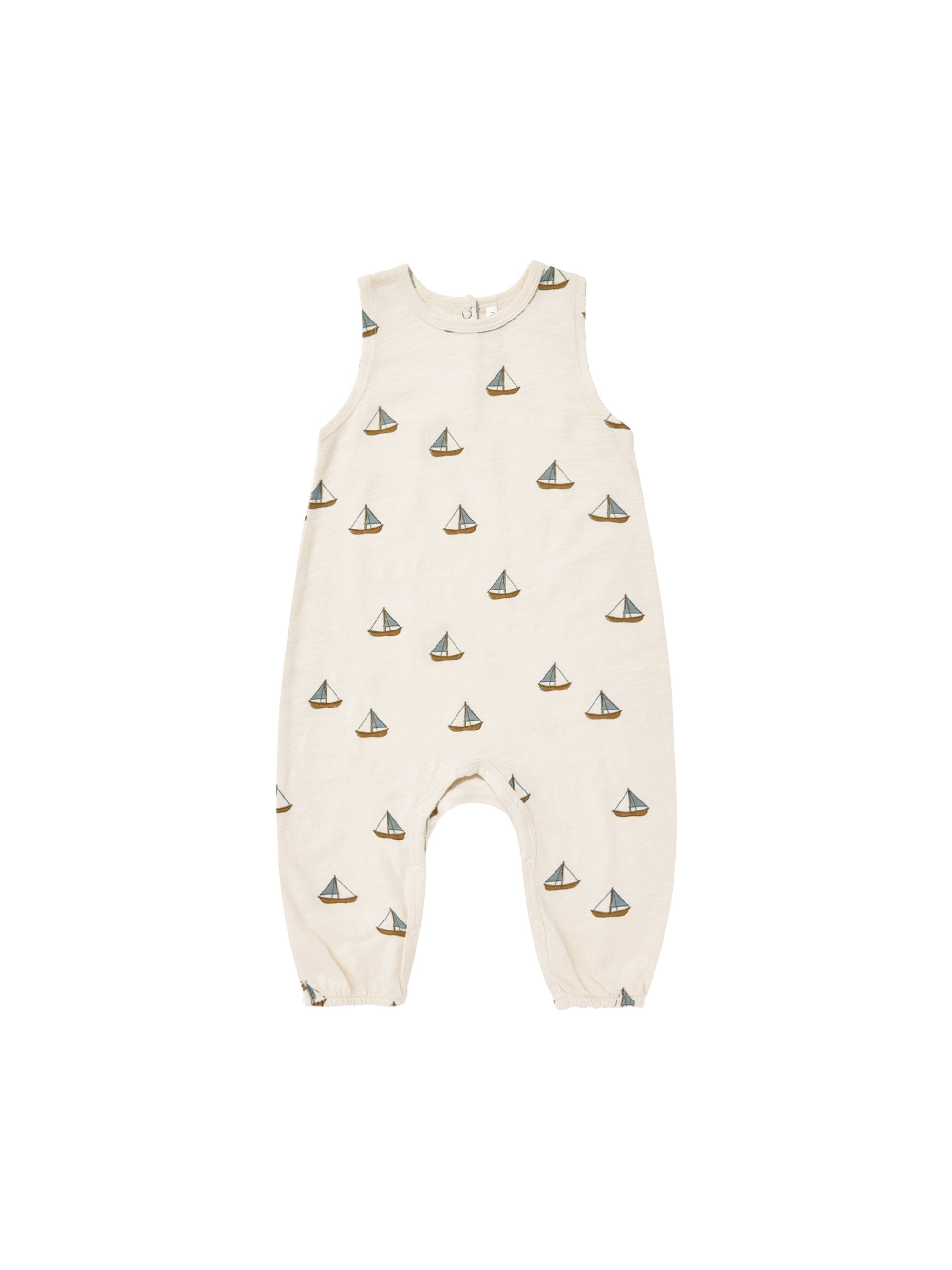 Cotton Terry Bubble - Denim Sailboat Applique - Sand