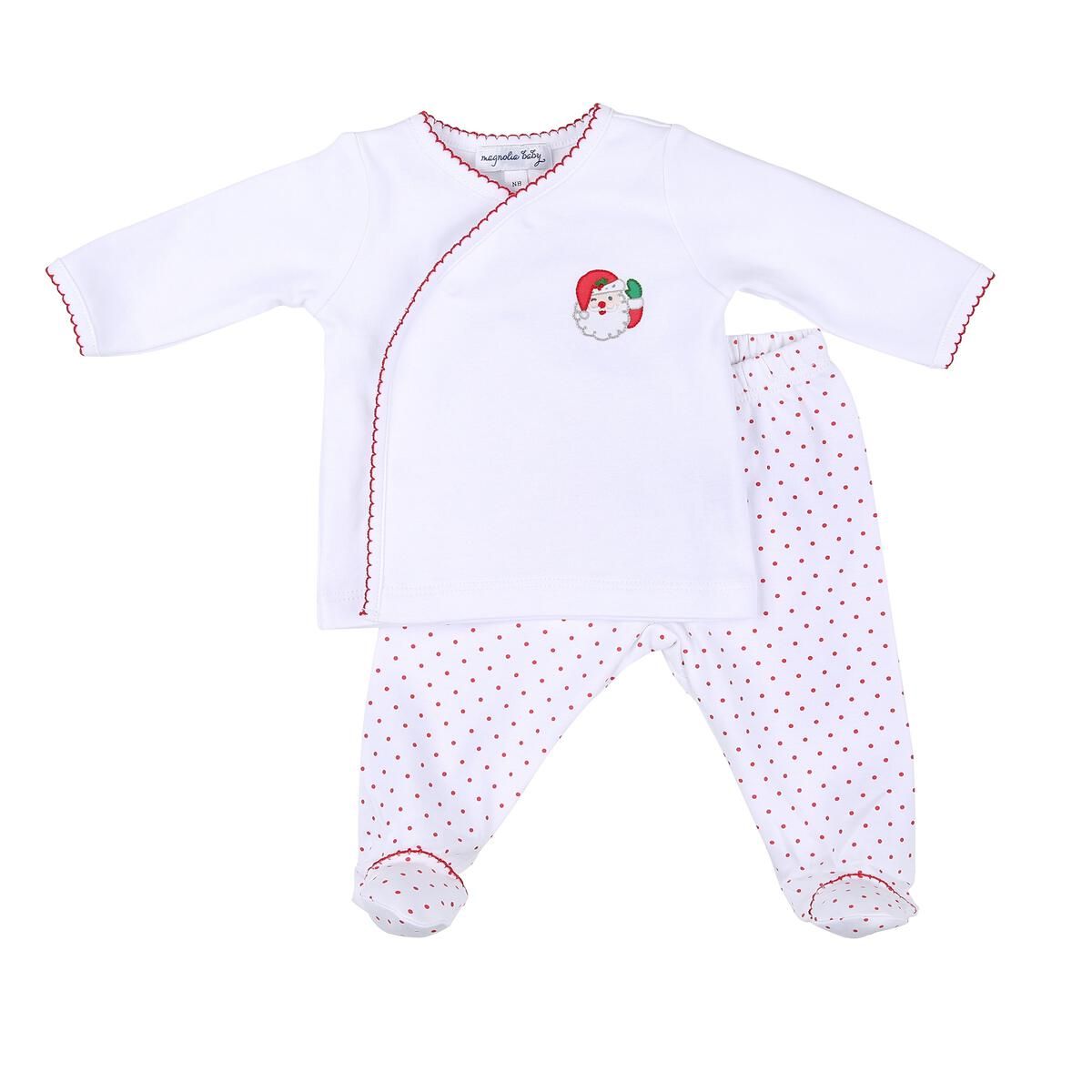 Magnolia Baby MAGNOLIA BABY WHITE WINKING SANTA CROSS TEE FOOTED PANT SET