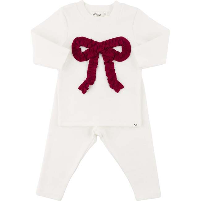 Ruffle Knit Vintage Red Bow Applique L/S 2pc Set