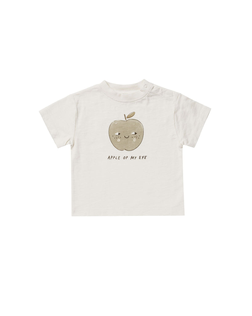 Raw Edge Short Sleeve Cotton Slub Tee - "dude" print - Denim