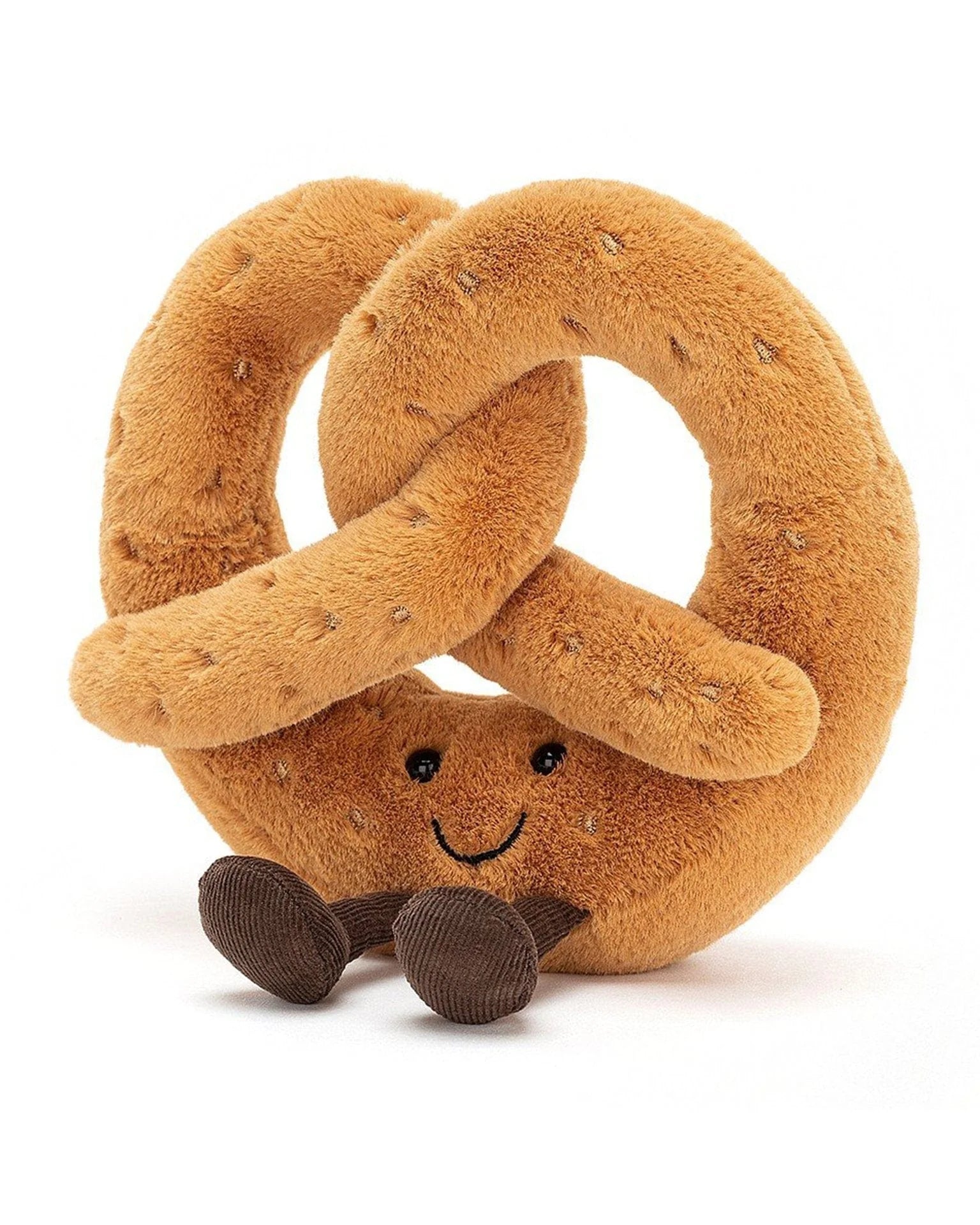 Freckly, friendly and fresh from the bakery, Amuseable Pretzel is knotty but nice! This squishy silly is golden brown, with cocoa cord boots and stitchy salt speckles! Huggy and hearty - a brilliant breakfast buddy!