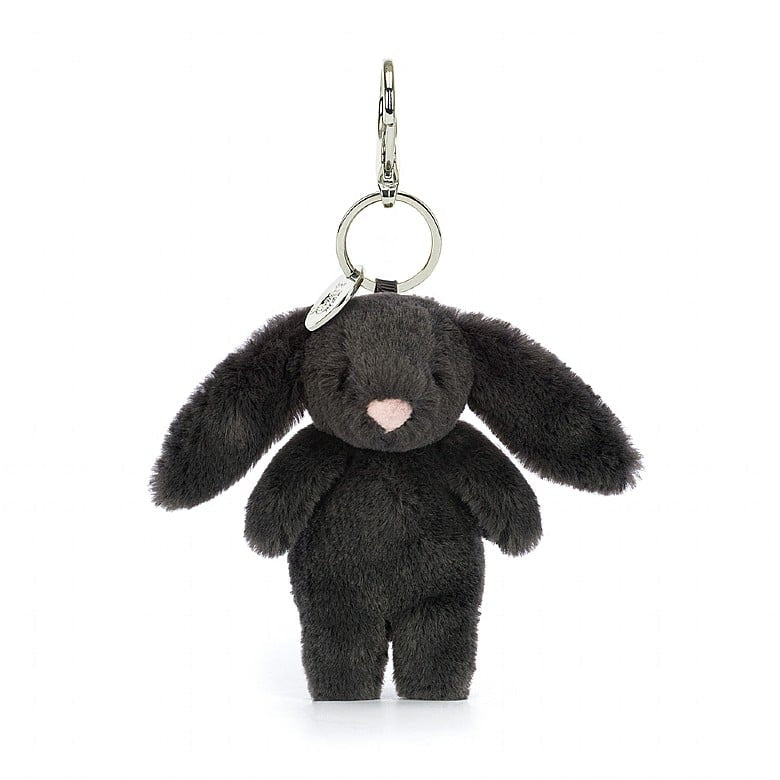Commuting to work or walking to school? Wherever you're headed, take the Bashful Bunny Inky Bag Charm. This sooty bunny has gorgeous long ears and a pink nose for adventure. With a silver clip, chain and Jellycat disc, you'll be charming all the way. Chain 8cm