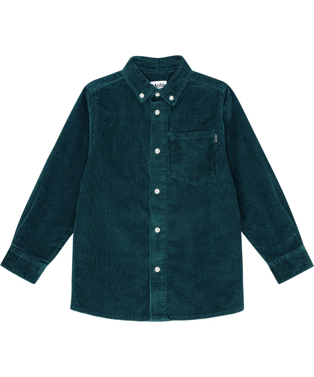 Green shirt in ribbed cotton corduroy with a button closure on the front, a button-down collar, long sleeves with cuffs, a sewn-on chest pocket, and a regular fit. Wear the shirt buttoned up or as an overshirt over a T-shirt.