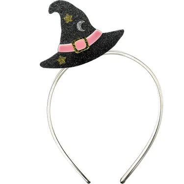 Get bewitching looks with these black glitter headbands adorned with charming witch hats. 100% Acrylic. Handmade in Brazil.