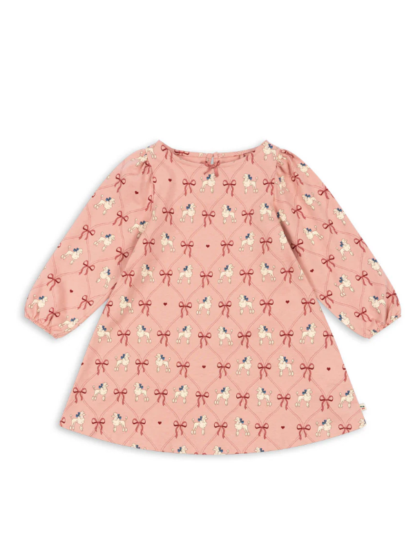 Dress in a soft cotton quality with shoulder pleats and voluminous sleeves.