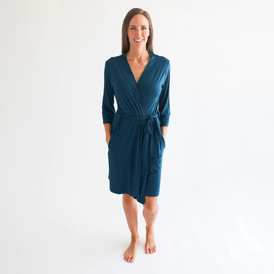 Signature mommy robes made to match our swaddles. Viscose from bamboo with deep pockets, cleverly positioned tie, and extra security tie inside for no peek-a-boos. Buttery soft bamboo will make you want to live in your mommy robe.