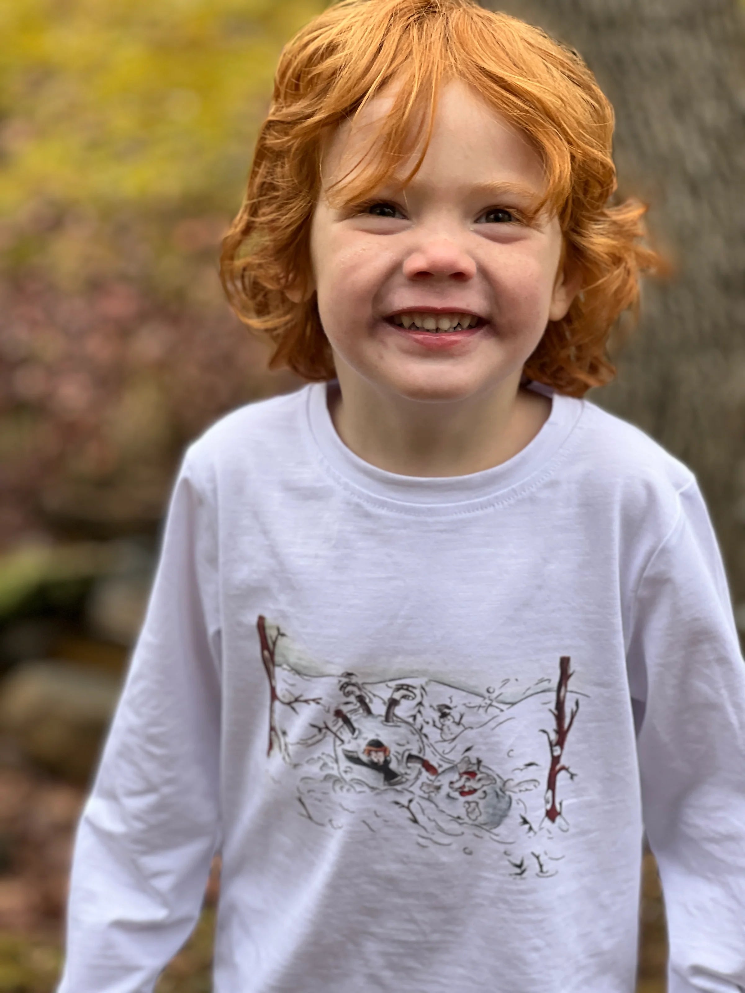 Me & Henry Henry 10th collection print tee with snowballing Henry