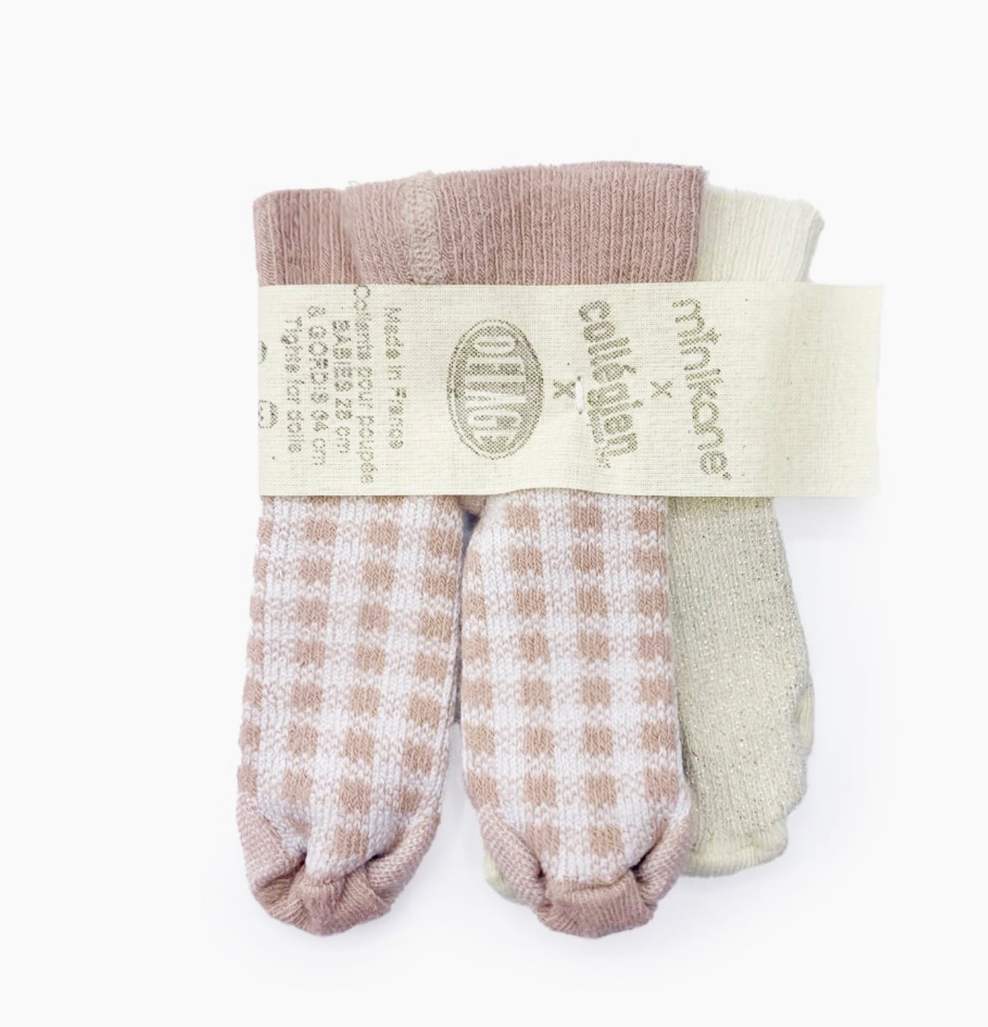 Minikane X Delage collection – Set of 2 soft lambskin lurex/old pink tights