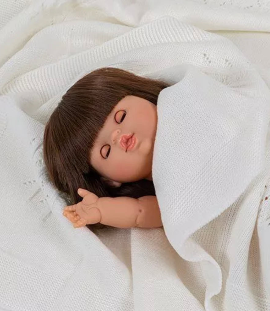 Sleepy-eyed Chloe is a 34cm vinyl doll that smells like vanilla. It is an exclusivity of Minikane®.