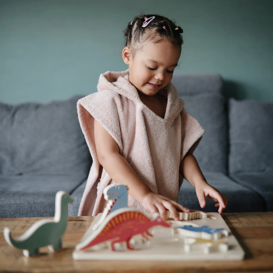 Made from 100% organic cotton, our poncho towel is gentle on sensitive skin and perfect for cozy cuddles after bath time or a swim. An open poncho design makes it easy to slip on and off busy toddlers. The machine washable fabric is absorbent and durable, staying soft wash after wash. Featuring an attached hood with adorable bear ears, littles will enjoy a soft and warm drying experience from head to toe.