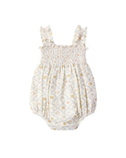 Our Julia Romper features a smocked chest and shoulder straps with ruffle detail. A playful look perfect for sunny summer days!