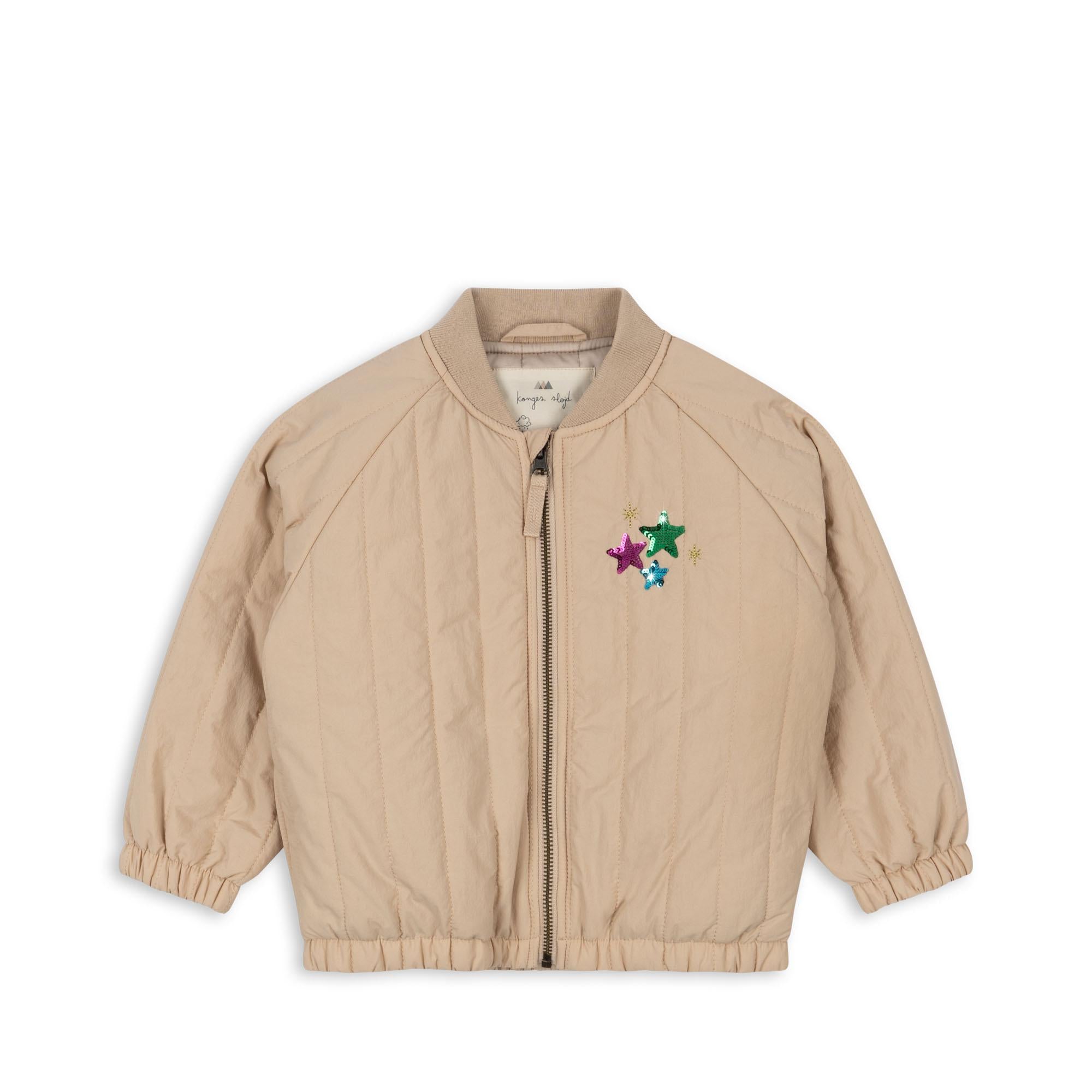 This water-repellent and wind-resistant thermo jacket is perfect for any chilly weather. Its decorative sequin pattern on the back adds a touch of style. Made from durable materials including nylon and polyester, it features BIONIC-FINISH*ECO technology for extra protection. Available in sizes for ages 2-12. OEKO-TEX® STANDARD 100 certified.