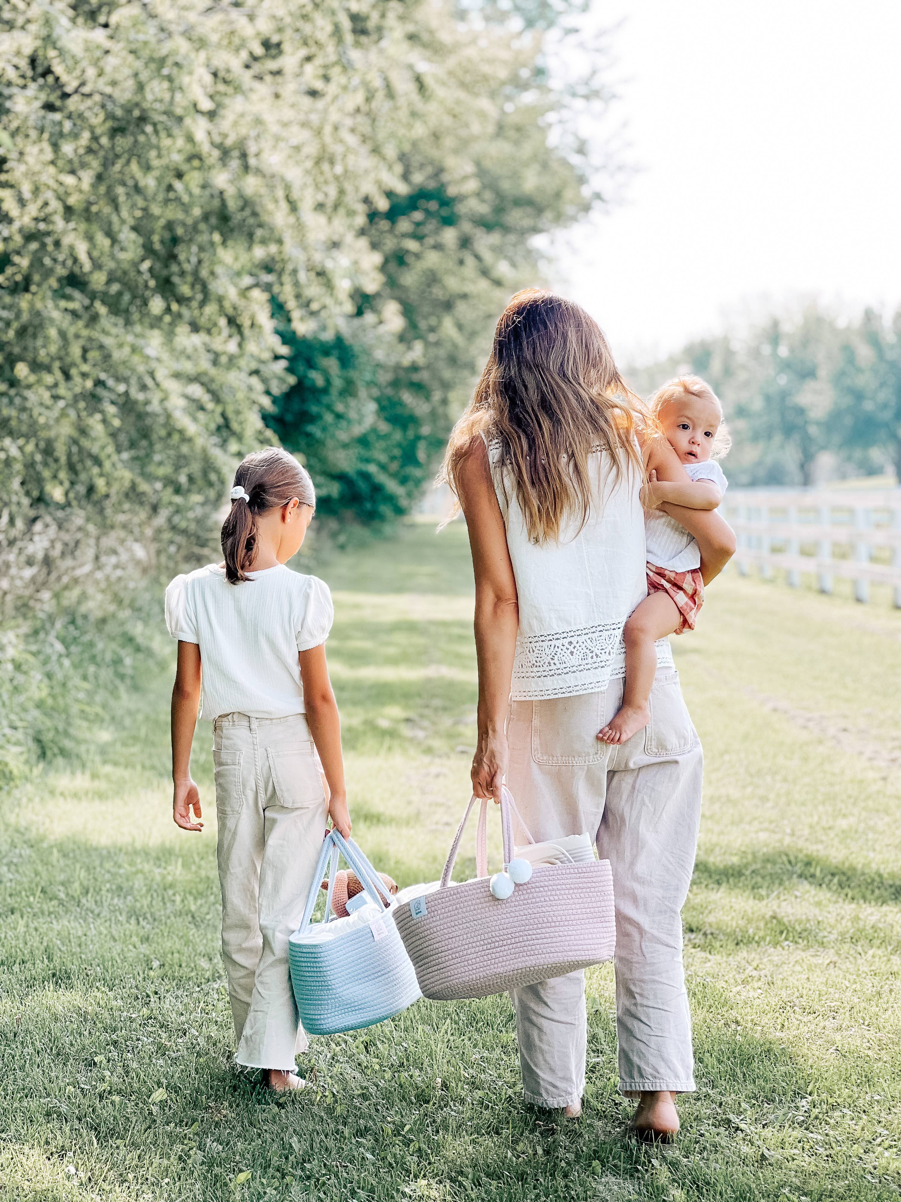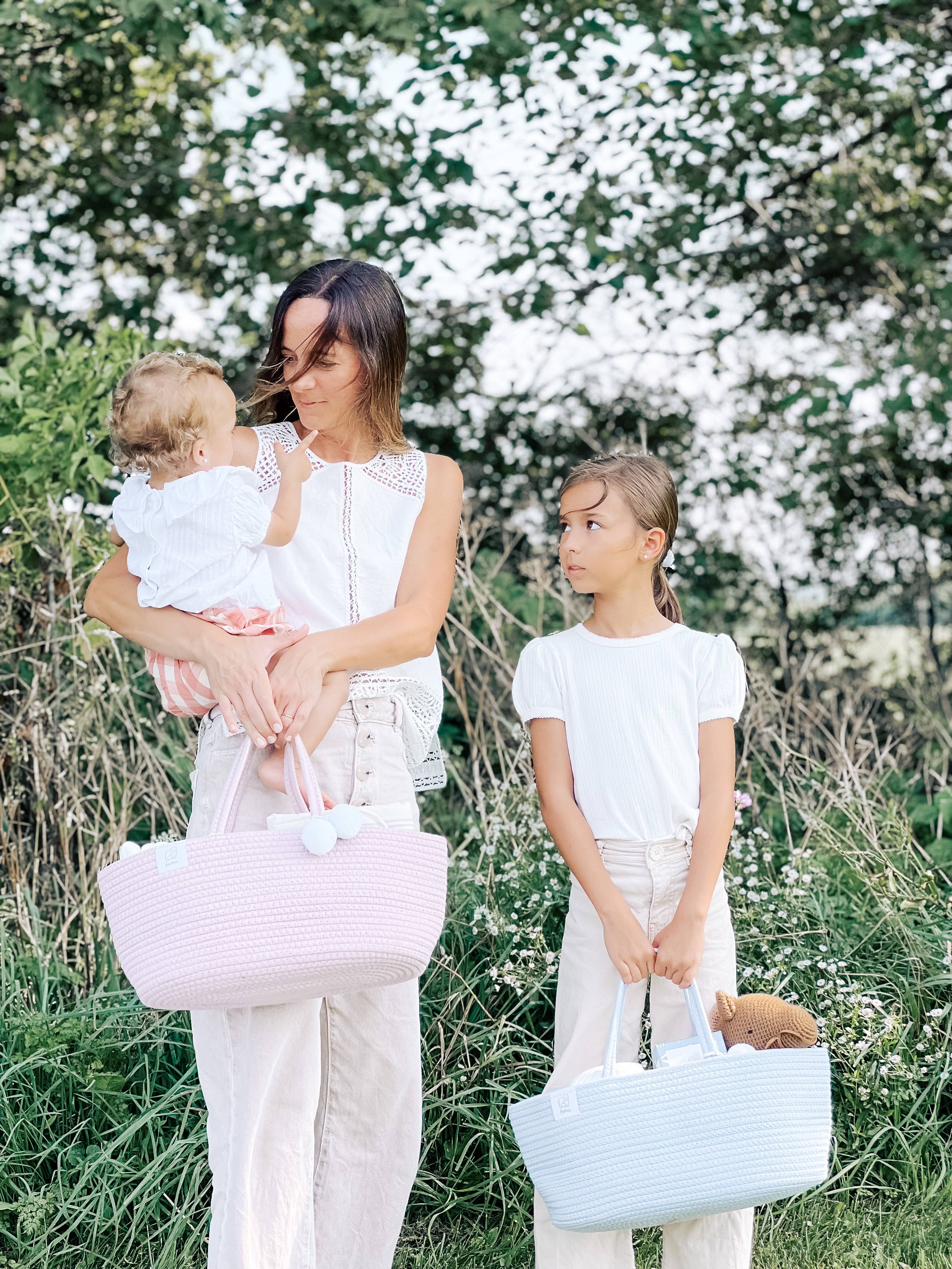 Our cotton rope diaper caddy is designed to store newborn essentials. Its size of 15” x 9.5” x 7” makes it not too bulky while large enough to keep everything you need.