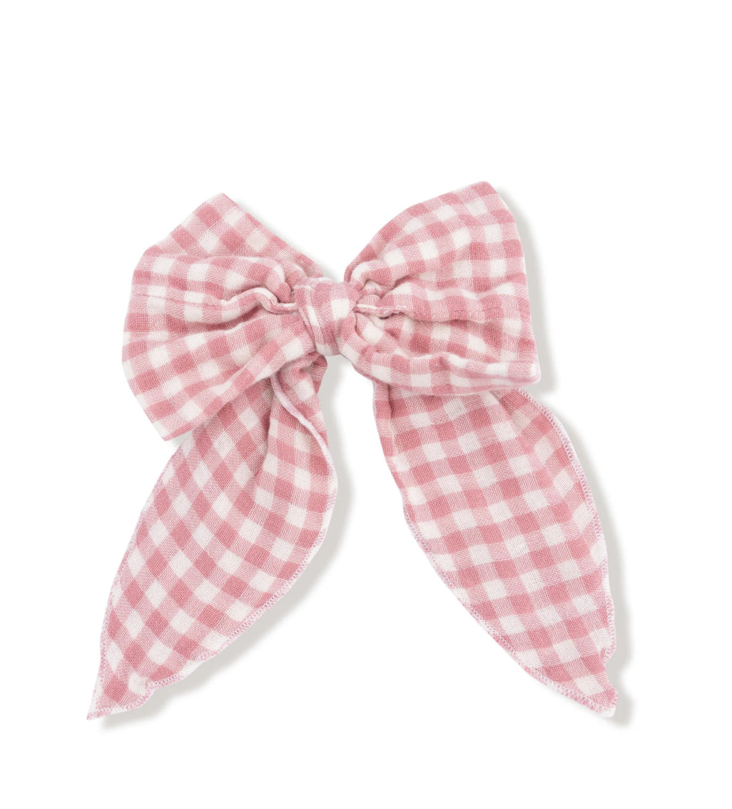 Rose Pink Plaid Bow with Tails Clip