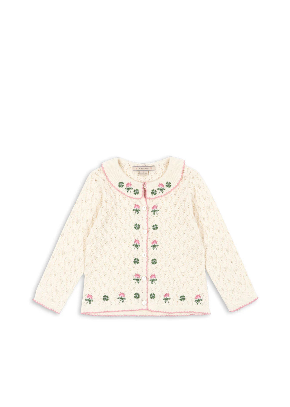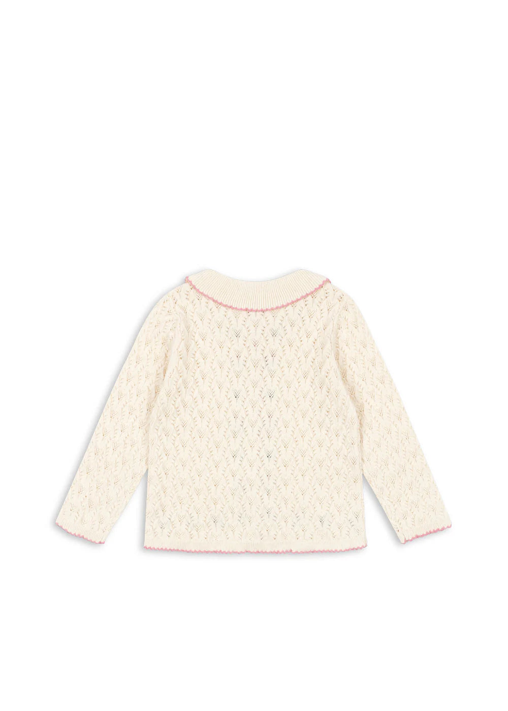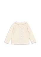 Designed with a collar and mother of pearl buttons in front. Finished in an exceptionally soft cashmere, wool, and cotton blend.