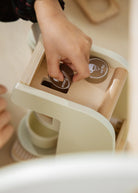 Let them turn into a barista with this wooden coffee maker and accessories set! Everything is there to concoct the most delicious creations: cappuccino, latte, macchiato, hazelnut coffee and more! They will have fun inserting the capsules into the coffee machine and stir the coffee in the tiny cup using the spoon.