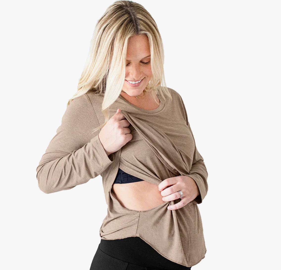 An essential long-sleeve tee for pregnancy and breastfeeding. Super-soft and modern with a flattering scoop neck, our Bamboo Long Sleeve T-shirt has a hidden underlayer for easy, discreet nursing and pumping.