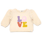 Cotton Terry Puff Sleeve Boxy Sweatshirt-"LOVE" Applique