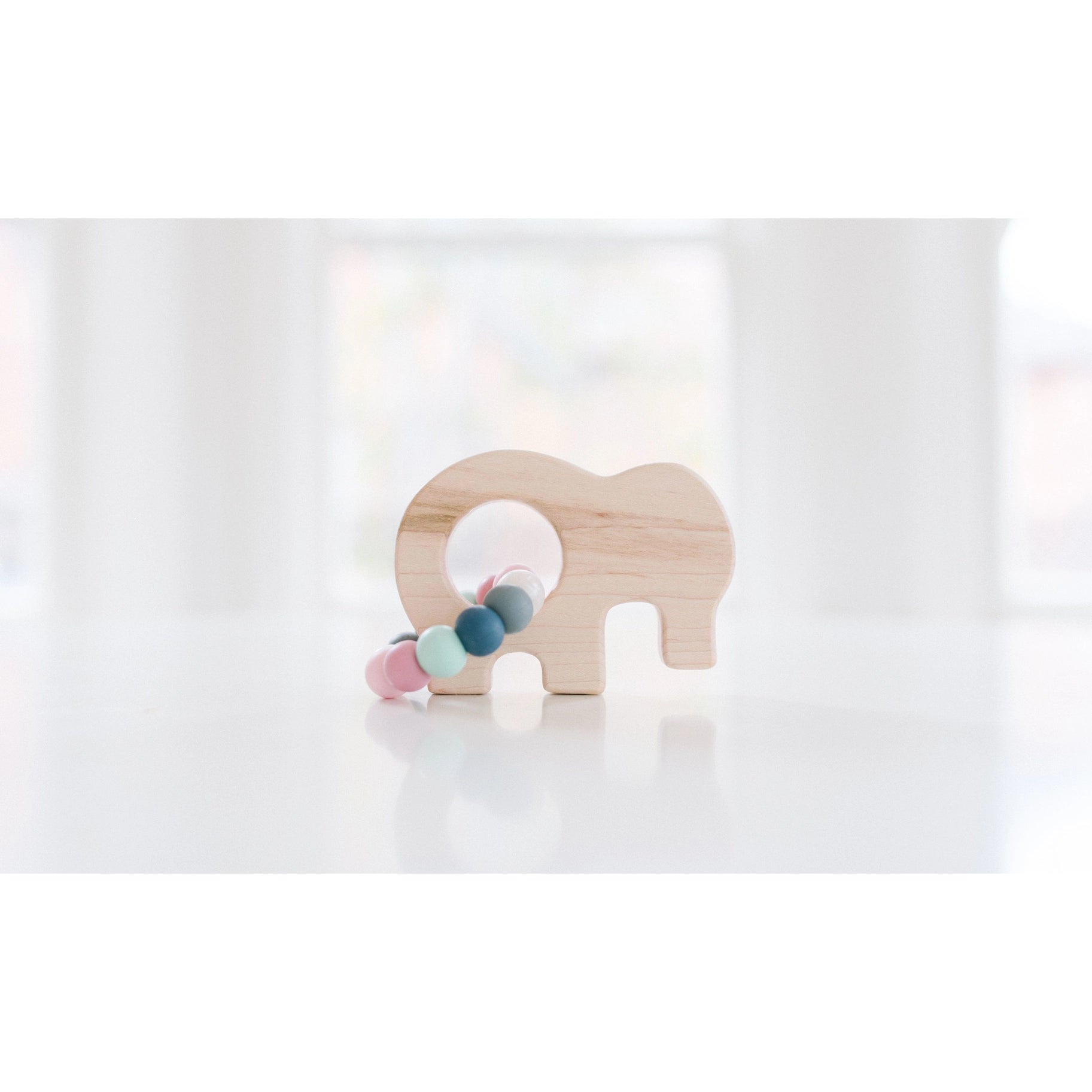 Our elephant grasping toy is the perfect lightweight toy for your little one to hold onto. Made from rock hard maple wood, this grasping toy is non-splintering and naturally antibacterial. It has a built in grasping spot or you can add on a teething silicone ring and toss it in the freezer for a couple hours as silicone will hold the cold to make it more relieving!