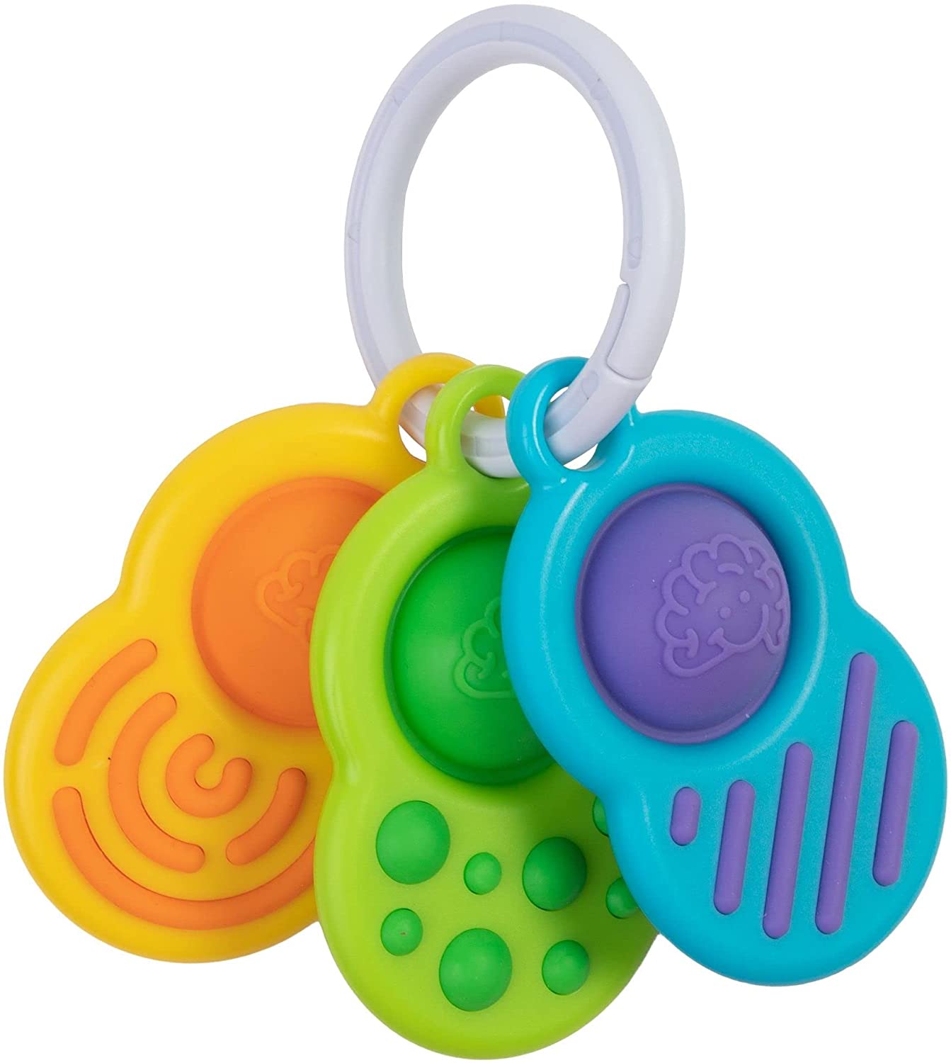 Each Clutch features a dimpl bubble on one end and squishy silicone textures on the other. There's green with bumps, yellow with circles, blue with lines... so much for the fingers to explore!