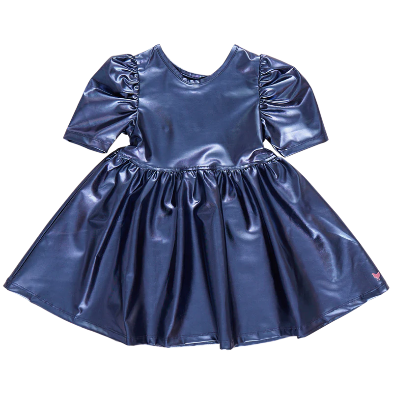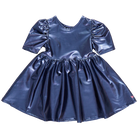 Introducing the Girls Lame Laurie Dress in Navy. Made of a luxurious and lightweight lamé fabric, this dress is perfect for any special occasion. The classic navy color adds a touch of elegance while the comfortable fit allows for easy movement. Available in girls' sizes.