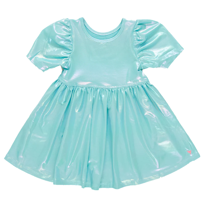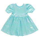 Electric Vibes! Your little rock star in the making will look brilliant in our flock favorite Girls Lame Laurie Dress! Fashioned in Blue Leopard, Cotton Candy, and Turquoise, this classic silhouette features a scoop neck, a gathered short puff sleeve and a full skirt that's tailor-made for twirling.