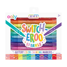 Add some sparkle to your creations with the Switch-Eroo Sparkle Glittery Color Changing Markers! This set of 12 color changing markers combines vibrant glittery hues with an exciting surprise—each marker is double-ended, featuring a dazzling glittery color on one side and a surprise mystery color on the other. Use the glitter side to add shimmer and shine, then flip the marker to reveal a secret shade to totally switch up the shade and switch up your design. These glitter markers are ready for all your creative endeavors - decorating cards, personalizing notebooks, or making school projects stand out.