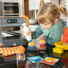 Crack the hook-and-loop egg into the bowl. Pour in some baking mix and stir it up with the mixer - when you pull the trigger, it actually spins! The crate doubles as an oven, and when the treats are done baking, you can "decorate" them with the sprinkles and icing. Mmm! Nothin' beats homemade! Prepare your little one for a lifelong love of baking with the Pretendables Bakery Set.