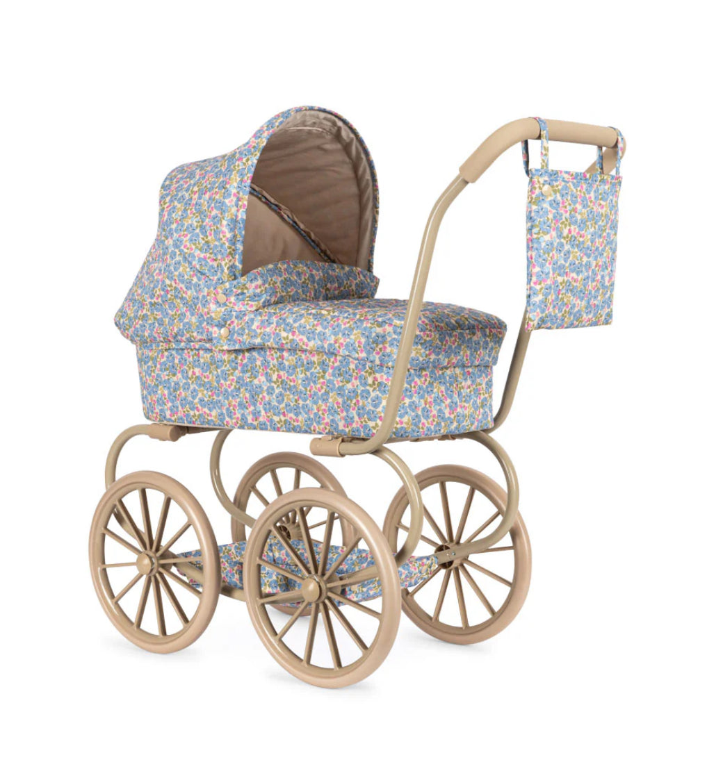 Our vintage style doll pram in a smaller version that is easy for little doll parents to maneuver.