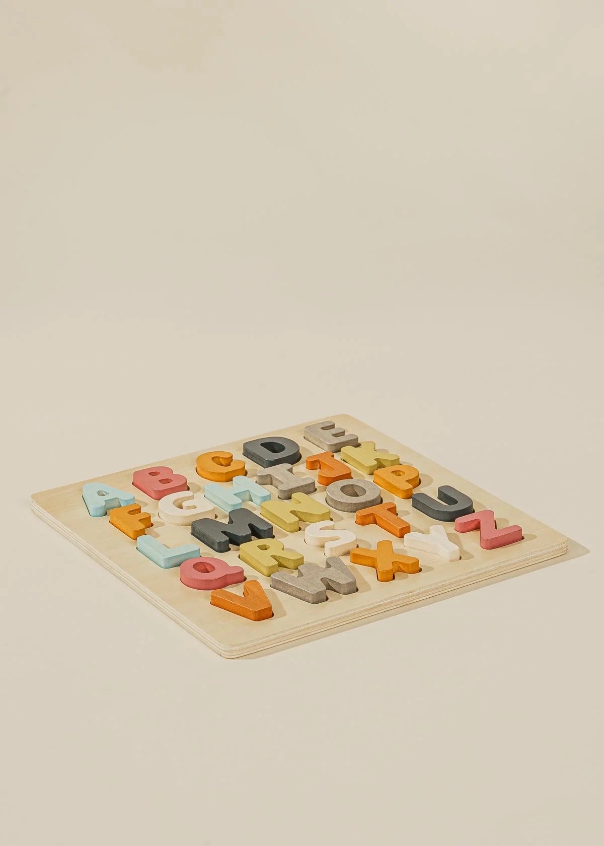 Adorable and entertaining, our colorful wooden letter puzzle's simple design is ideal for young children. Your little one will have fun finding the right place for each piece while learning about the letters of the alphabet. Puzzles are great for both fine and gross motor skills as well as problem solving skills. A nice and fun challenge for your little one that can also serve as a decorative touch!