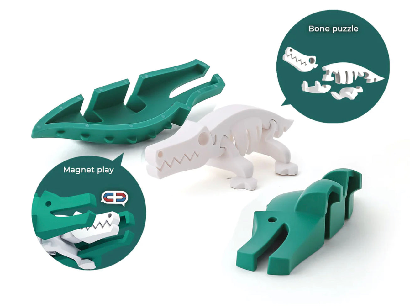 HALFTOYS® Crocodile is part of a collectible Half-Animal series that combines multiple play styles into one package. Complete with a diorama for an immersive savanna adventure, the toy has interactive magnets to satisfy snapping needs and a skeleton puzzle for endless tinkering. Collect and connect them all to create your own Savanna.