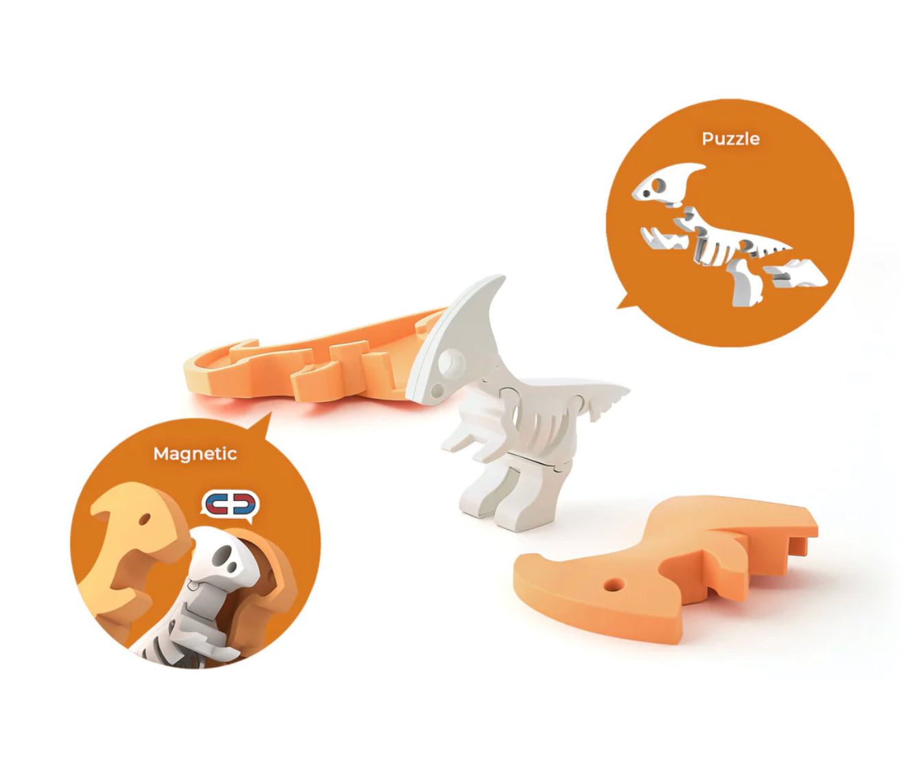 HALFTOYS® Para is part of a collectible Half-Dinosaur series that combines multiple play styles into one package. Complete with a diorama for an immersive dino adventure, the toy has interactive magnets to satisfy snapping needs and a skeleton puzzle for endless tinkering. Collect and connect them all to create your own prehistoric world.