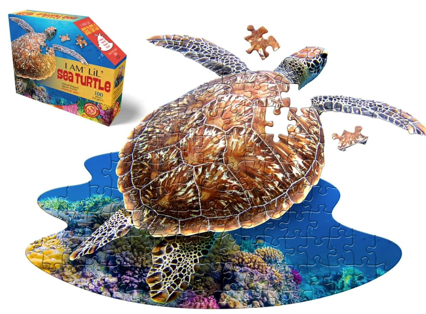 Madd Capp puzzles are big and beautiful and way more fun than your average 100-piece jigsaw! I AM LiL' SEA TURTLE is animal-shaped and poster-sized (33” x 24” assembled).