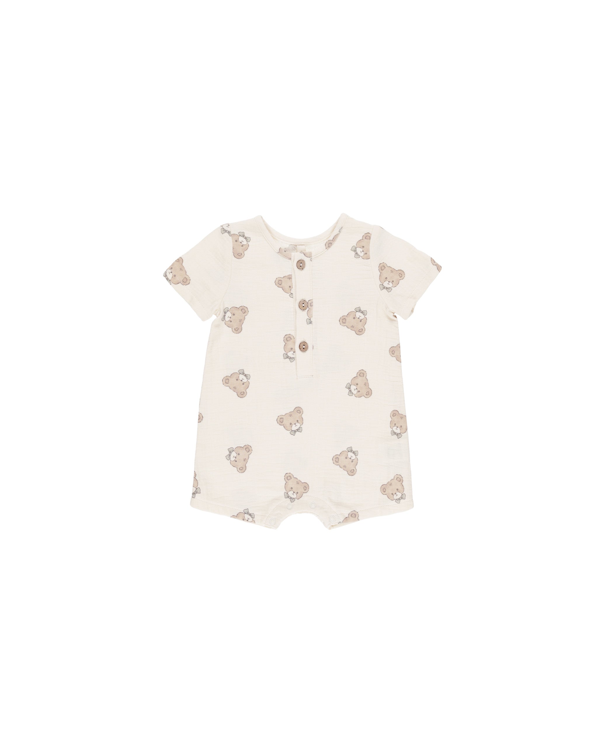 SHORT SLEEVE WOVEN ROMPER || TEDDY
