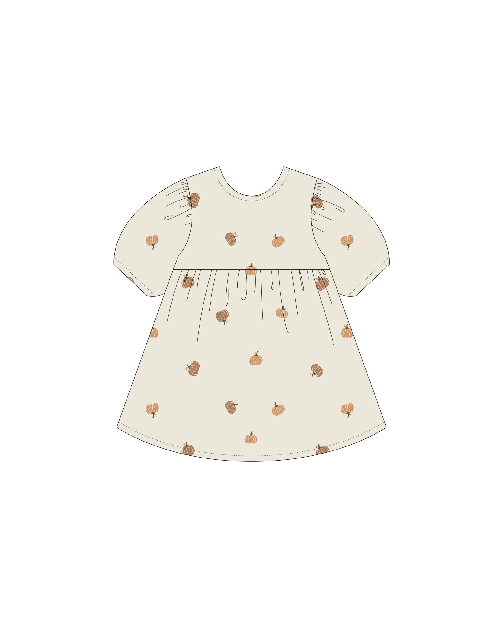 This 100% cotton waffle baby doll dress features a festive pumpkin pattern, perfect for Halloween. Stay comfortable and stylish in this dress that is both playful and practical.